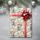 En porträtt av en vacker australisk Hund med röd och vit Jultomten som är utmärkande i mönster på denna Helgdag som omsluter sig pappert. Porträtt placeras i bakgrunden av grönt löv och röda bär.