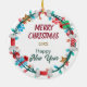 På framsidan av den här Helgdag är en bild av en förtjusande Beagle-hund som bär en julhatt. Hund är inneslutet i en julandedräkt av inslagna ben, guld-stjärnor, paket och ljus. Baksidan av dekoratet har samma andedräkt med anpassningsbar i rött, guld och grönt. Byt enkelt år till ett namn för att anpassa det, om du vill.