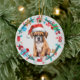 Santa Hat Boxer Puppy Bone-andedräkt Julgransprydnad Keramik