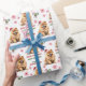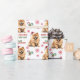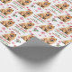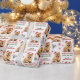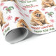Det upprepade mönster på detta papper om julomslag innehåller en bild av en vacker Chow Chow-hund med en röd julhatt. Röd text och grönt säger GOD JUL" och "Gott nytt år" med anpassningsbarna namnteckning nedan. Andra bilder som ingår i mönster är rött dekorativt snöflingor och polkagrisar.