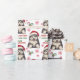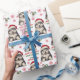 Det upprepade mönster på detta papper om julomslag innehåller en bild av en underbar, liten malamute-valp med en röd julhatt på knubbiget. Röd text och grönt säger GOD JUL" och "Gott nytt år" med anpassningsbarna namnteckning nedan. Andra bilder som ingår i mönster är rött dekorativt snöflingor och polkagrisar.