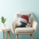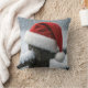 A charming furry Santa Claus hat resting on a rustic fence post, beautifully set against the backdrop of a swirling snowstorm
