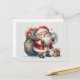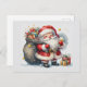 Jultomten är avbildat med en stor säck fylld med gåvor omgiven av färgat presenter och dekorativa stjärnor. Hans fräcka uttryck och traditionella röda kläder förmedlar en festlig helgdag.