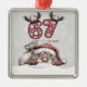 Santa Claus is hiding from the six seven expression, on a snowflake background.