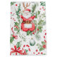 En färgfull julklapp med tomten, Hjort och julbalar, candy cane och holly.