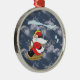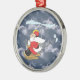 Denna gulliga julprydnad presenterar jultomten som levererar paket i en helikopter.