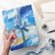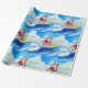 Wrap your gifts with sunshine and surf! This modern watercolor wrapping paper features Santa Claus surfing on turquoise waves in a red surf suit with a Christmas-themed surfboard decorated with candy-cane stripes, holly, and stars.