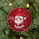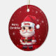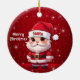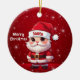 Santa! Celebrate the holiday season with this festive round ceramic red ornament featuring an endearing cartoon graphic of a cute baby wearing a Santa hat, and Merry Christmas written in white. Perfect for decorating your tree or as a thoughtful gift, this whimsical decor makes a cherished keepsake for years to come. Customize by changing the text, the font, the font color, or remove the text. You can even transfer this design onto other products. Enjoy this design your way! 🎅🎄 Dimensions: Diameter: 2.87". Thickness: 0.156". Weight: 1.4 oz. Made of white porcelain. Full-color, full-bleed printing. Printing on both sides. Thread does not come attached/tied.