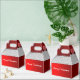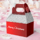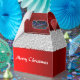 En röd julfavärde med en röd och vit design som påminner om en Santa kostym, med rött sammetshandtag och vit päls runt toppen. Texten, som lyder "God jul i vitt på både fram- och baksidan av presentlådan", kan lätt personlig till kostym.