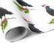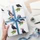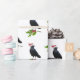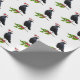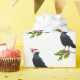 En gulsot kråka som bär en tomtehatt håller en skål på helgdag pappra.