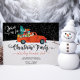 Fira Helgdagarna med den söta tomten som levererar gåvor i sin röda orange lastbil, med Julgran som pluggar genom snö. Söt skripttypografi. Perfekt till nästa jul Party!