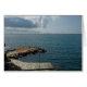 Segelbåtar visas vid horisonten mot ett grumligt himmel