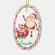 På den här söta prydnaden, Santa vågar hej medan en liten rödräv håller den gåva han just har fått. Under bilden är ditt speciella barns namn i grönt. Bilden ramas med söt röd, grönt och vit candy cane rand mönster. Baksidan av dekorementet har samma strimlade ram och mer text fält för att du ska kunna anpassa. Perfekt för mor- och farföräldrar eller föräldrar till ge till en liten.