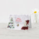 Jultomten tittar vid en renare och Julgran i ett snöskum. Unik tomten och en renare på en julscen.