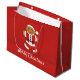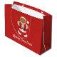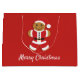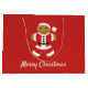 Stor gift-bag med en leende gingerbröddesign och ord "God jul". Ord kan anpassas som du vill. God jul! Santa Pepparkaksgubbe Helgdag jul Large Gift Bag Sweetsham Food Art | ©Melissa Patton - Artist/Illustrator