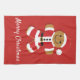 Kökshandduk med ett leende gingerbröd Santa och ord God jul. Ord kan anpassas som du vill. God jul!