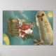 Tomten kommer in i sin luftballong. Den här årgången i julklapp skildrar tomten i en luftballong med ett gäng presenter och Julgran.