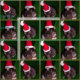 Detta festliga tyg presenterar två bilder av en råtta som ha på sig en Santa hatt.