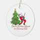 Tomten spelar gitarren som gungar runt Julgran på en keramisk ornament.