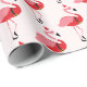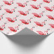 Noveltyns julomslutning papper med en mönster av rosa flamingos i jultomten på en rosa bakgrund.