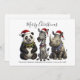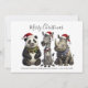 A cheerful panda, a playful zebra, and a friendly rhinoceros sit side by side wearing Santa hats and festive collars decorated with colorful ornaments and jingling bells. Their joyful expressions and holiday accessories create a fun and heartwarming Christmas scene, celebrating friendship, laughter, and the magic of the festive season in a cute and whimsical style.
