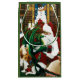 Tomten med en ung grönt drake på hans knä. Santa's den är fylld med en påse leksak, baby griffin, baby vit majs och två katter i bok hyllor. Baktill är en kamera, bokhyllor fyllda med bokar och tapeter från snögubbe