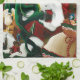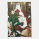 Tomten med en ung grönt drake på hans knä. Santa's den är fylld med en påse leksak, baby griffin, baby vit majs och två katter i bok hyllor. Baktill är en kamera, bokhyllor fyllda med bokar och tapeter från snögubbe
