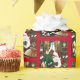 Tomten med en ung grönt drake på hans knä. Santa's den är fylld med en påse leksak, baby griffin, baby vit majs och två katter i bok hyllor. Baktill är en kamera, bokhyllor fyllda med bokar och tapeter från snögubbe