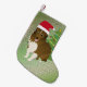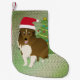 Cute tecknad stil Shetland Sheepdog är redo till jul. Den här hund har en röd och vit julhatt på sig. Det finns ett Julafton träd i bakgrunden.
