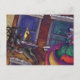 julklappar och julkort har vårt originalverk digitalt målat av Traci Van Wagoner från Jultomten och hans renar som flyger förbi ett brunstfönster med en överraskad hund tittar ut. Titta noga och hitta alla små älvar. Den här visuella teckningen är ett underbart sätt att dekorera och märka dina gåvor och paket i helgdag. Må tomten uppfylla alla önskemål den här helgdag!