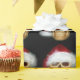 Människaskallen med en Santa hatt och en abstrakt fractalius filtrerar applicerad litet makaber jul som slår in papper