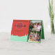 Celebrate the wonder of Christmas Eve with a festive design featuring Santa’s sleigh flying past a glowing deep red moon outlined in gold. Below, a light green landscape with five evergreen trees sets a peaceful winter scene, while the message “’Twas the Night Before Christmas” shines above and “Wishing You Holiday Magic and Joy” rests below the sleigh. To the right, two cherished family photos are framed with dark green borders for a warm, personal touch. Inside, the top panel carries a heartfelt blessing: “Merry Christmas and a Happy New Year. May God bless you throughout this Christmas season”, followed by your family name and members’ names in elegant red with white shadow. The bottom interior features Santa’s sleigh in black against a medium green background, completing a design that blends faith, tradition, and holiday magic in timeless Christmas colors.