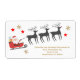Ett tema i God jul med Jultomten, hans renar och Rudolf, röda näsrenar, som alla är på väg att leverera Julklapp när de flyger genom himlar med röda stjärnor och guld snöflingor. Formaterad för att användas som en stor returadressetikett, anpassar dig bara efter ditt namn eller efter ditt företag namn och din returadress, upp till 4 linjer. Storlek text kan förstoras eller förminskas så att den får plats eller tas bort för att lämna det här området tomt om du vill skriva något av dina önskemål. Detta är något större än den storleka klassiska returadressen. Det har en inverkan och är fortfarande målinriktat i storleka ordalag för en återvändandemärkning till användan med utskick av julkort eller paket. Ett annat alternativ som etikett för "utskick" och lämna är tomt - för att skriva i ett adress för transport eller utskick. Produktval för dessa: Adressetiketter eller Leveransetiketter. Julutformningen passar inte in på den mindre "returadress"-storleka.