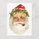 Vintage jul-Helgdag av Jultomten som röker en pipa. Han bär en röd hatt som dekoreras med löv och bär.