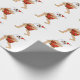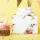 Jultomten som hoppar på stranden i grunt vatten. Han ha på sig festliga simningstammar och hans Santa hatt.
