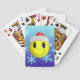 Cute Santa med hårig rött och vit jultomat och en snöflingor fylld bakgrund.
