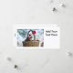 Foto av en ekorre med en tomhatt sitta i basket med snö överallt. Basket har en ljusröd julbåge. Den här söta ekorren bild är ett roligt sätt att fira julhelgen och kan enkelt anpassas med din egen text på många olika produkter till jul.