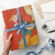 Tomten tar på sig vågar i detta lekfulla mönster och visar upp sina surfningskunskaper med stil. I sin klassiska röda jacka- och flip-flops rider han golden surfboard över vinkar turkos mot en fektiv röd bakgrund sprinklad med snö-liknande prickar. Den här utformningen blandar julens glädje med roligten av strandliv, perfekt för kustnära helgdag, inslagning eller kläder.