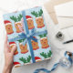 Santa tassar och hans ren. Iklädda förtjusande Terriers för amerikangroptjur helgdaganden. Repetitionmönster med blåttbakgrund och älskvärd snöflingor. Perfekt för inpackning av presenter.