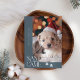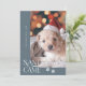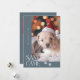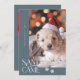 Cute och lustigt julfotopapperkort för helgdag till hundägare med en typografiktext som säger "Santa Tassar Came" med ett foto av din hund. Bakgrunden är skifferblått.