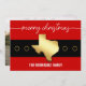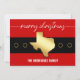 En stor magi kräver ett stort bälte och ett stort - dvs. Texas-stort - låsbeslag för att hålla ihop allt. Denna något abstrakta utformning visar ödet för tomtens jacka och svarta bälte med guld hål. Låsbeslaget är en dimensionell guld-form av Texas. Handskrivet skript över översta önskemål, mottagaren ett god jul med din familj namn under bälte. Lägg ett familjefoto och namnen till dina familjemedlemmar på baksidan.
