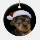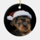 Den här prydnadsfiguren i Santa Yorkie har en digital oljemålning av en Yorkie från ett original.