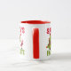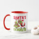 Den griniga, färglösa juldesignen mugg med rött och grönt som läser Santa's Favorite, Jultomten, Julgran och renar!