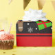 Den moderna och moderiktiga jultomten för anpassningsbarnamnhelgdag, pepparkakan, röda strumpor, gröntpresenter med röda pilbågar, vitsnöflingor, vitsnömönster med svart bakgrund och med röd randpersonlig med precis tillfogar dina kända gåvor eller monogramgåvor eller din initialer för en unik gåva. För manar julgåvaidéer, kvinnor och pojkar och flickor. Ideal för helgdagar och julgåvor.