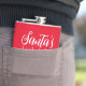 Tomtens lilla hjälpreder i ett festivt, vitt typsnitt på en röd bakgrund, komplett med Santa's bälte och guld bälte-låsbeslag.