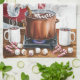 Sprid varm helgdag med den här vackra personligen kökshandduk med tomten som rör upp en mysigt kaka av hett kakao. Den här festdesignen är komplett med polkagrisar, marshmallow och ångande mugg och ger ett gott helgdag till vilket kök som helst. Anpassa med ditt namn till ett unikt säsong-accent, perfekt för att lägga till charm till helgdag baking eller presenting i kakaoälskare.