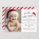 Det här enkla, klassiska hand plockade-pepparmyntet rand och Santa hat-fotokortet är ett sött sätt att tillkännage baby först jul.
