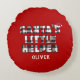 playful santa's little helper personalized throw pillow for holiday season! black and white plaid check design.
