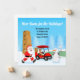 Make your holiday move merry and bright with this playful Christmas moving announcement card! This whimsical illustration features Santa carrying a tall stack of moving boxes labeled “Kitchen,” “Bedroom,” and more, while a cheerful reindeer drives a red golf cart with his own stack of moving boxes. A surprised snowman looks on from the golf course’s 18th hole, adding a touch of humor to the scene.