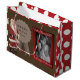 Den kanske mest förväntade gåvan till ett barn varje jul är julklappen från Santa. Lägg till tomtens magi med en anpassningsbar presentväska! På framsidan och baksidan står budskapet "Santa's Nice List" och ett band med "OFFICIELL: Gift från tomten" på den. Lägg till barnfoto och namn för lodrät. Polka dots på båda sidor, som är heligt och festligt.